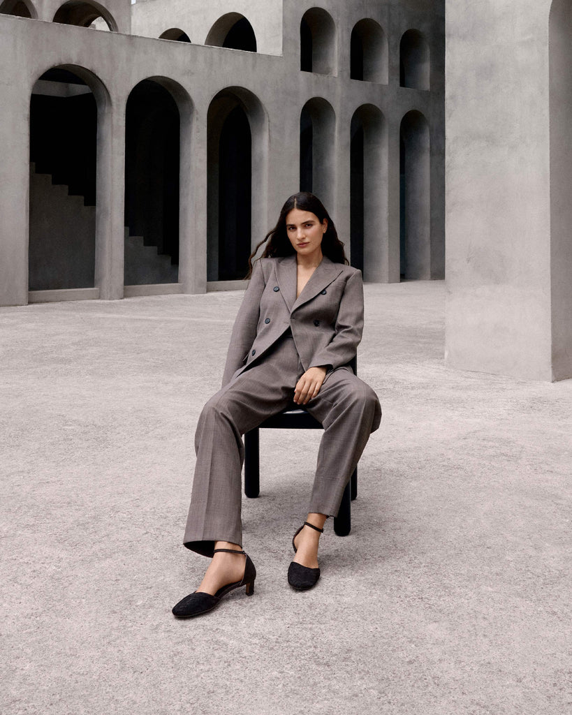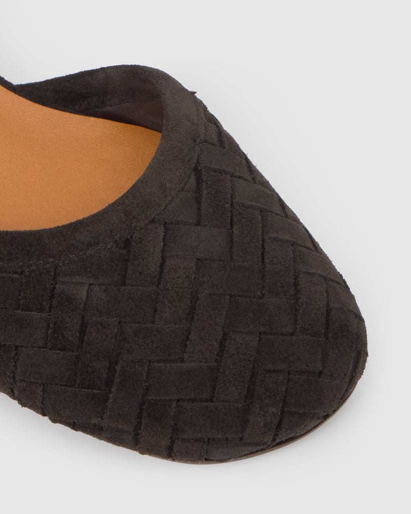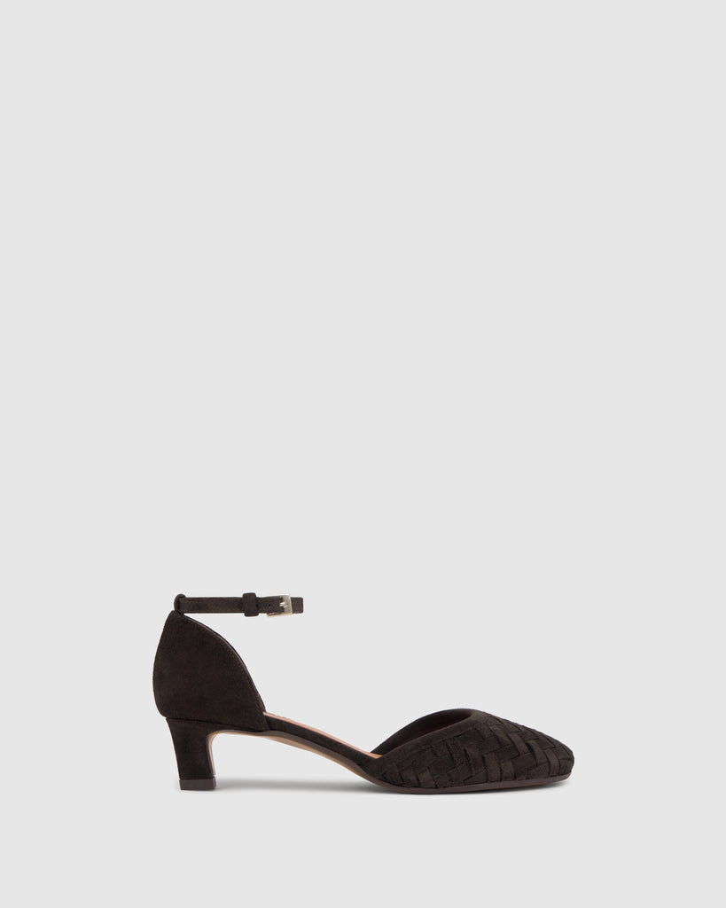 Zapato tacón Artemisa en serraje intrecciato, cierre de hebilla, plantilla acolchada y tacón kitten de 4cm.