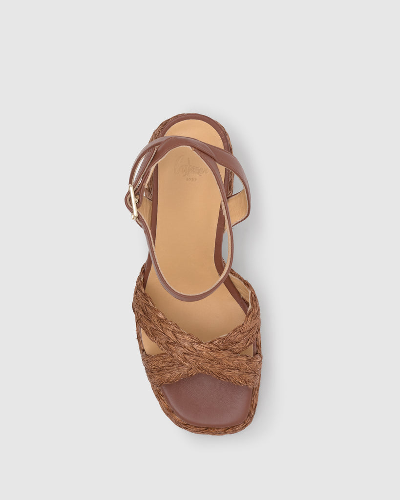 Sandalia Valeriette en rafia natural con cierre de pulsera, plantilla acolchada, escote en V y tacón de 10 cm forrado a juego.