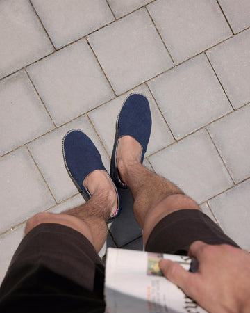 Iconic Pablo camping style espadrille in washed organic cotton and jute sole.