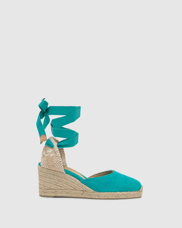 Icónica alpargata Carina en algodón orgánico lavado con cierre de cintas, plantilla acolchada y cuña de yute de 7 cm.