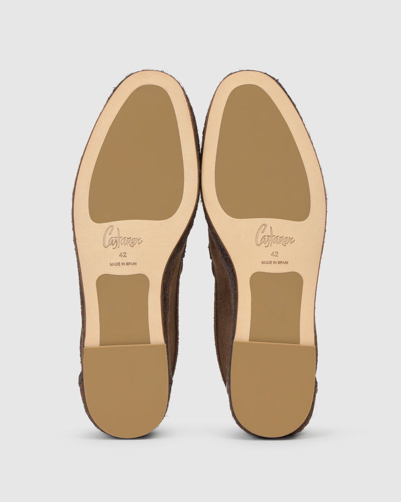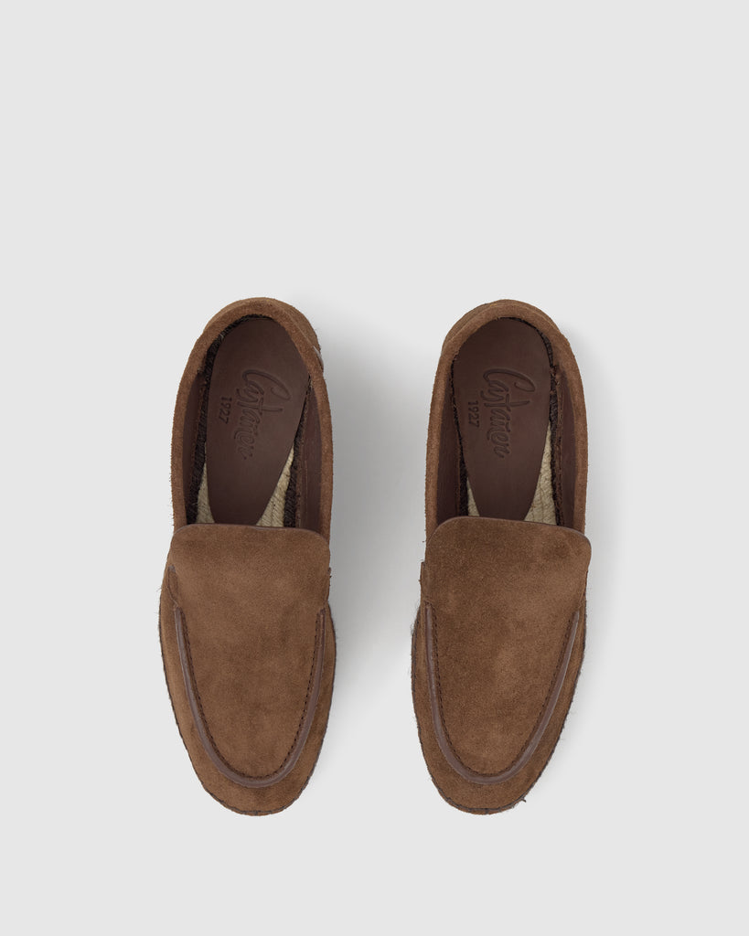 Espadrille Neals de style mocassin en croûte de cuir de qualité supérieure certifiée par le Leather Working Group (LWG), reconnue pour sa texture douce, sa résistance et sa finition mate. Dotée de finitions peintes et polis à la main, et d’une semelle en jute teintée, elle repose sur une base en cuir.