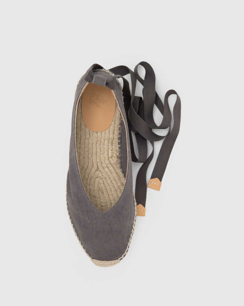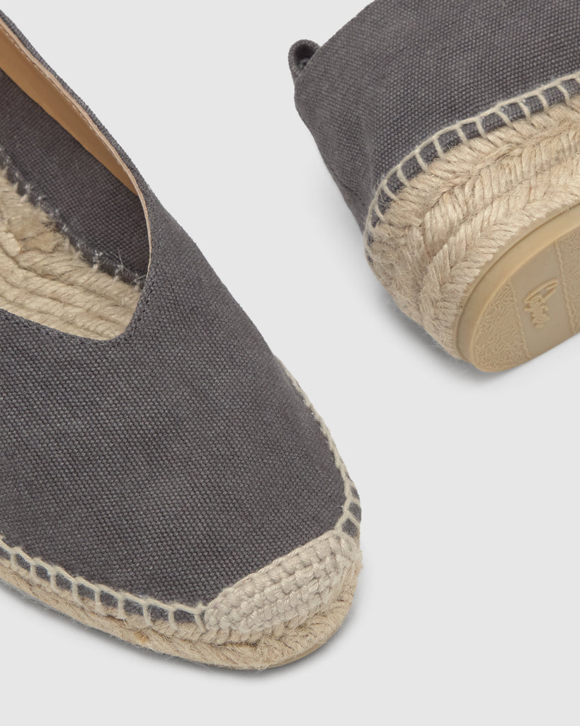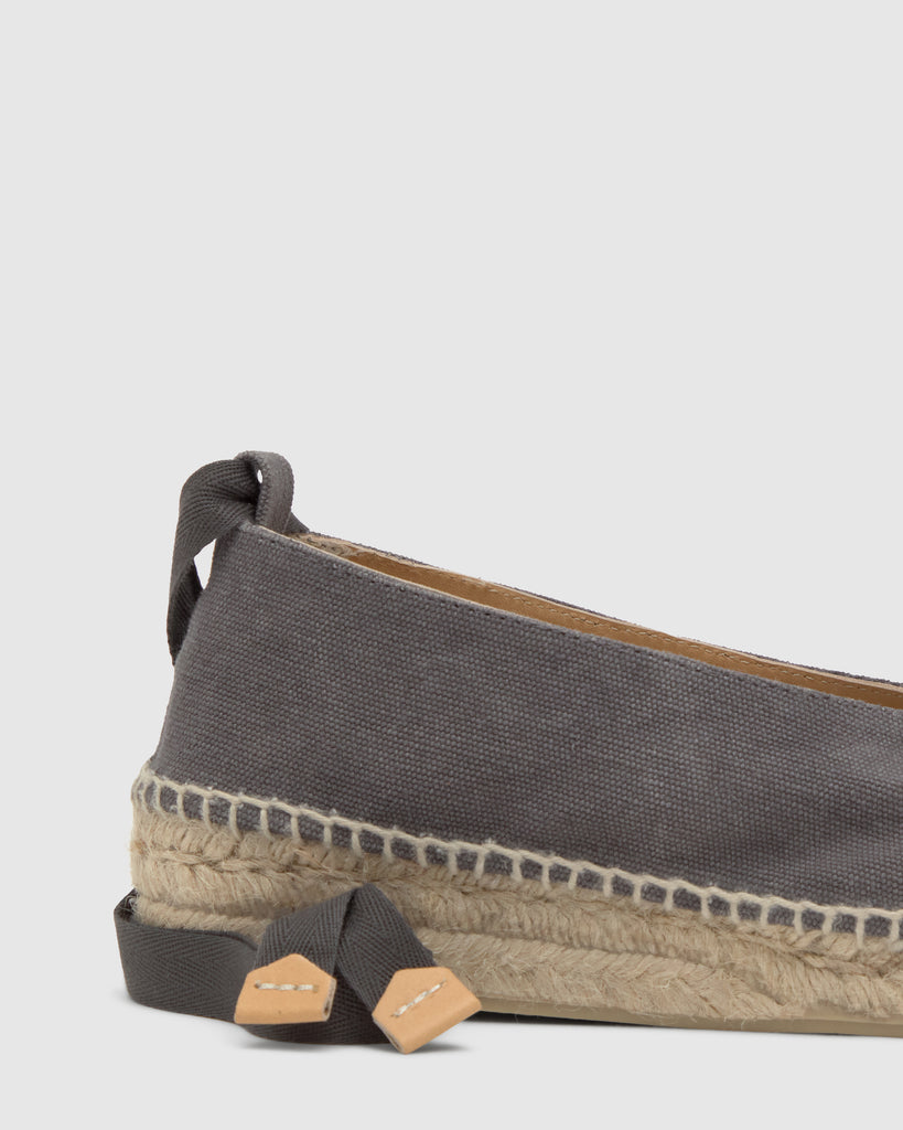 Alpargata plana Gea en algodón orgánico lavado con cierre de cintas extraíbles y mini cuña de yute de 4cm.
