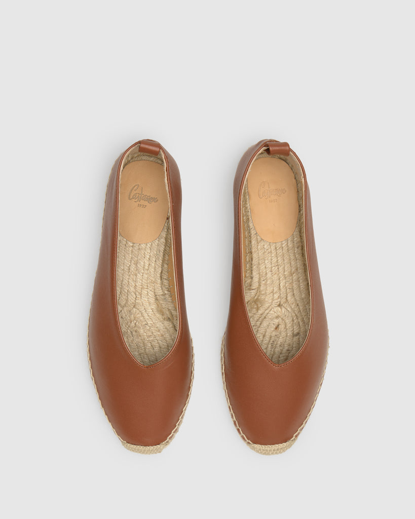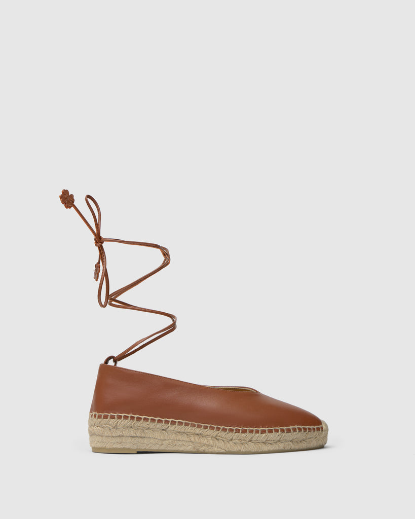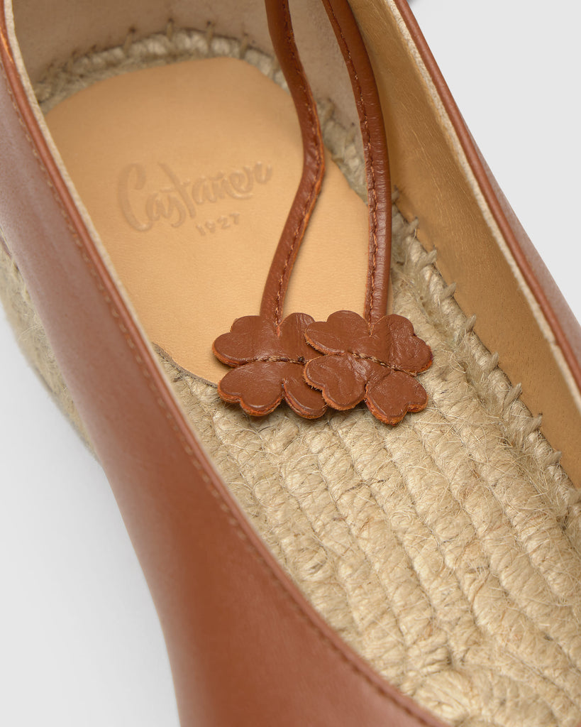 Alpargata Gea en napa con cierre de cordones de cuero extraíbles y mini cuña de yute de 4 cm.