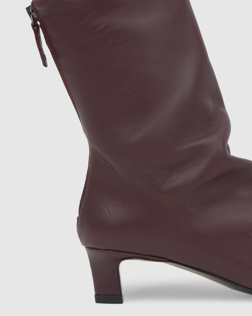 Botín Ariel en napa con cierre de cremallera, plantilla acolchada y tacón kitten de 4cm.