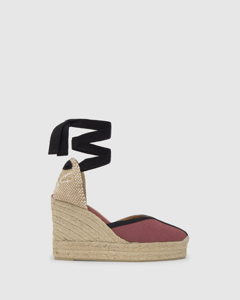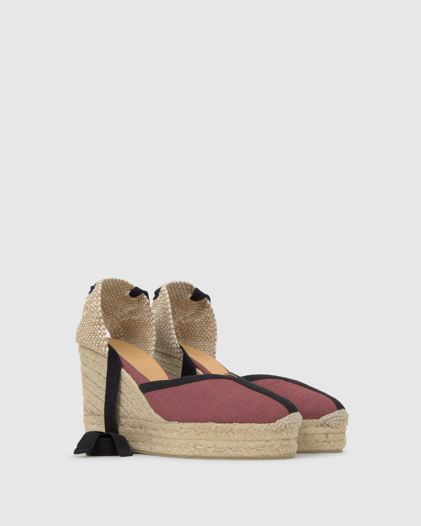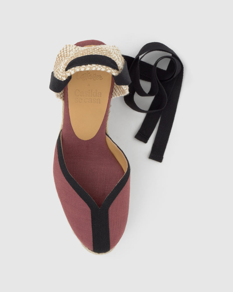 Diseñada por 'Casilda se Casa' para Castañer, la alpargata Carmen en lino con cintas de algodón es la propuesta ideal para cualquier celebración. Cuenta con cierre de cintas, plantilla acolchada y escote en V. Cuña de yute de 11cm con doble plataforma.
