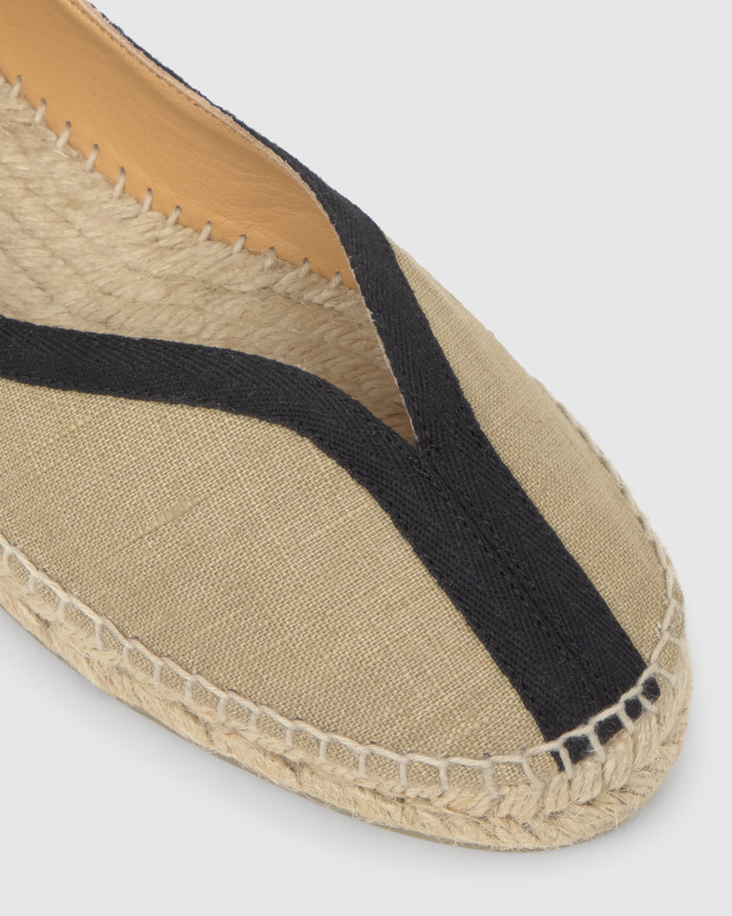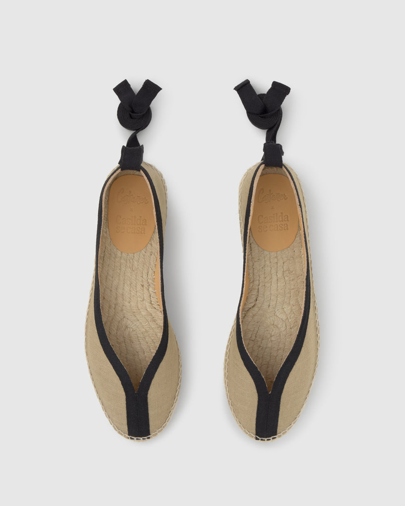 Diseñada por 'Casilda se Casa' para Castañer, Kanu está realizada en lino con cintas en algodón y es la propuesta ideal para ir plana a cualquier celebración. Pero además, es tan versátil que puede acompañar tu vestido de novia, un look de invitada o el total look en jeans.