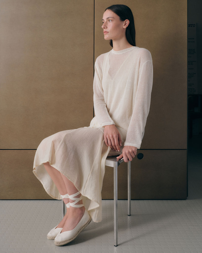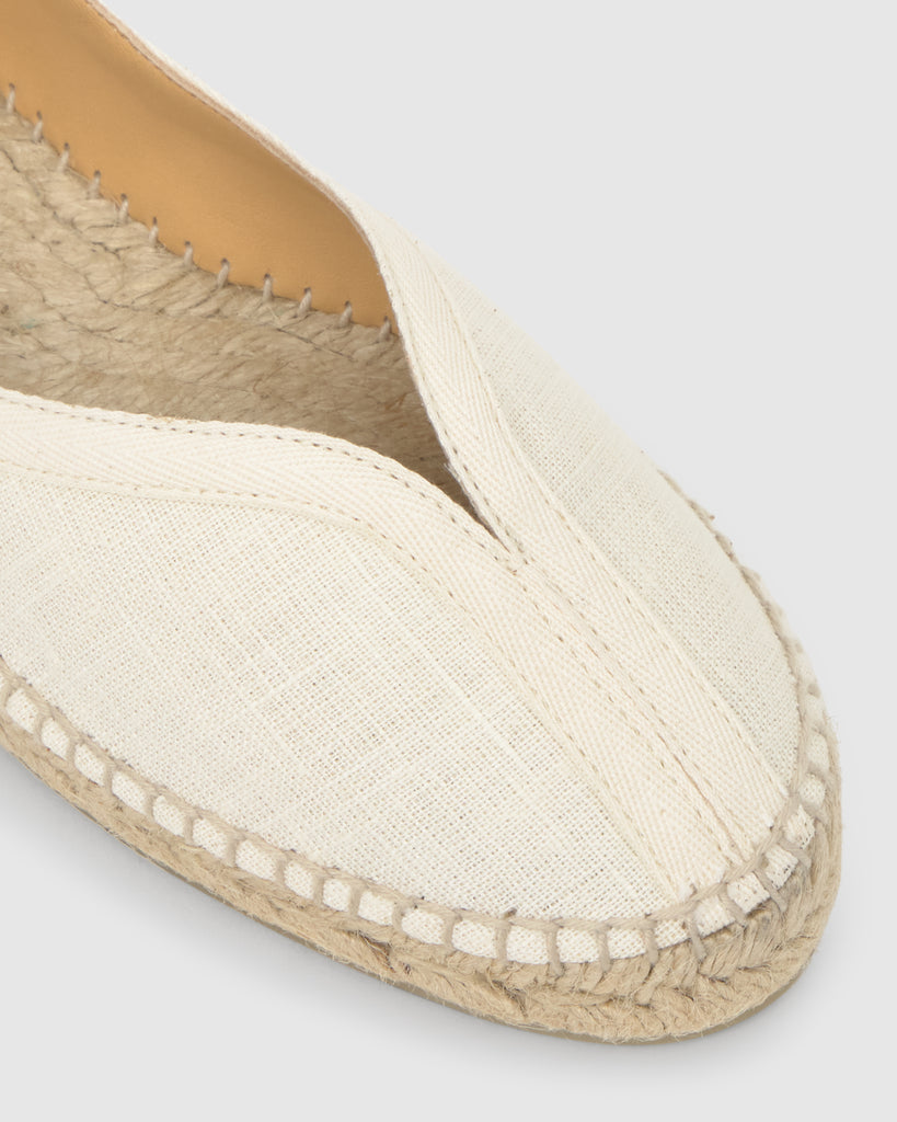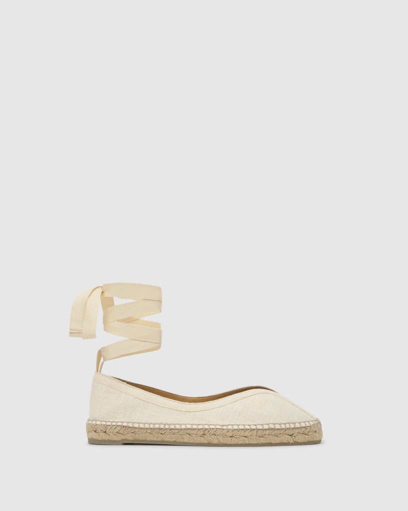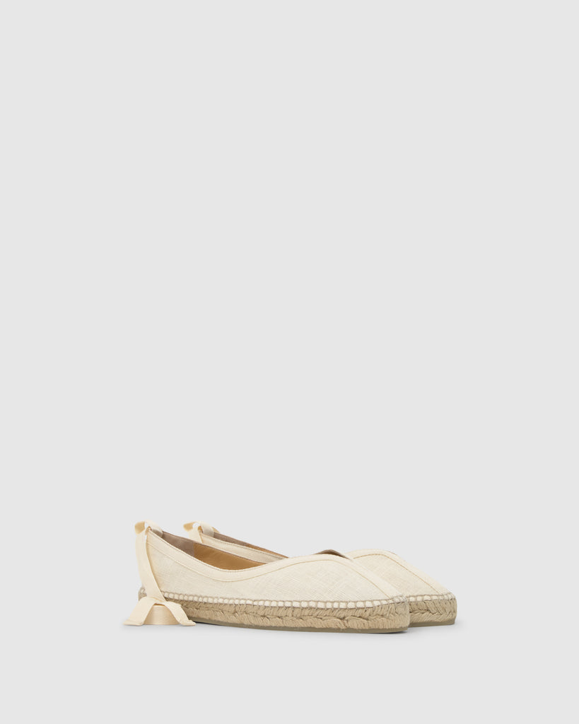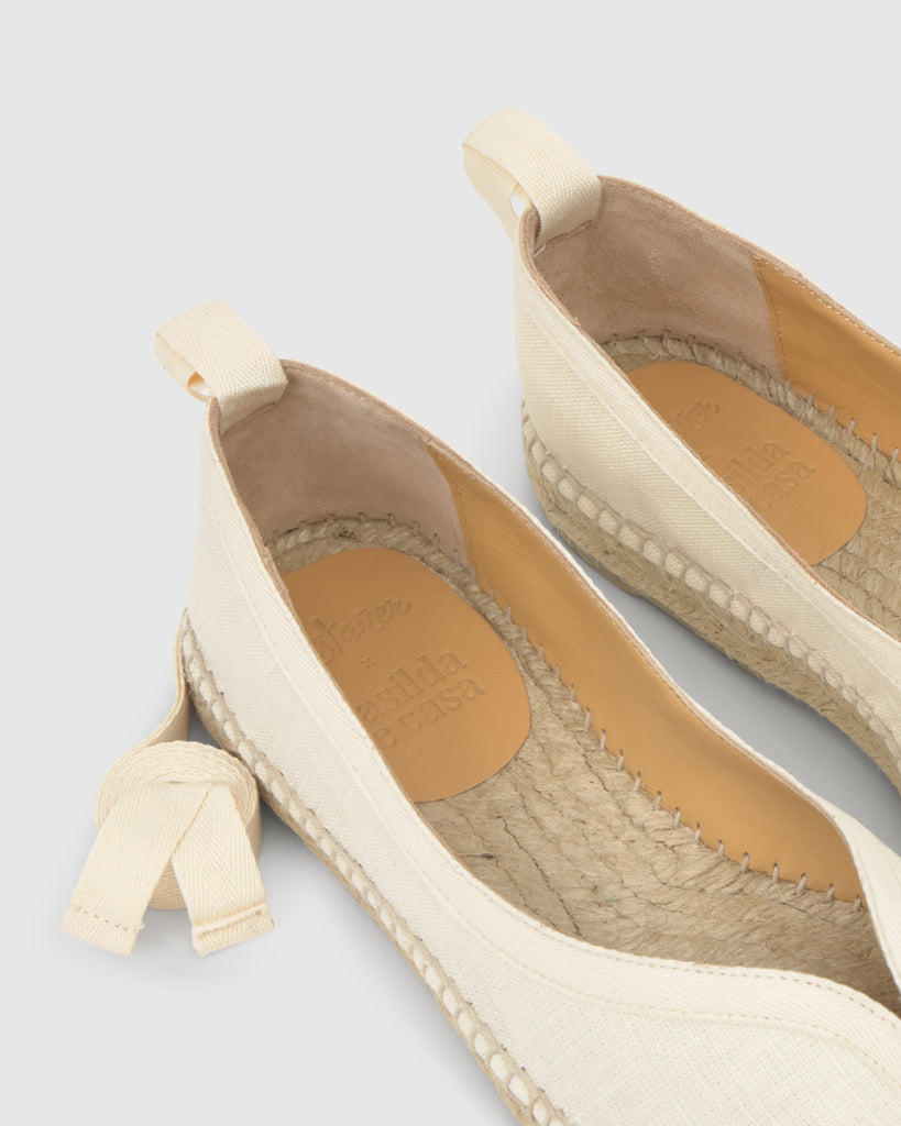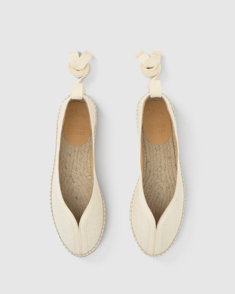 Diseñada por 'Casilda se Casa' para Castañer, Kanu está realizada en lino con cintas en algodón y es la propuesta ideal para ir plana a cualquier celebración. Pero además, es tan versátil que puede acompañar tu vestido de novia, un look de invitada o el total look en jeans.