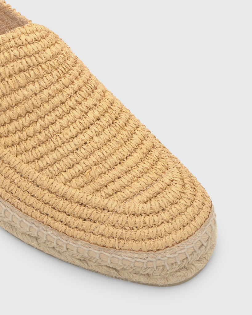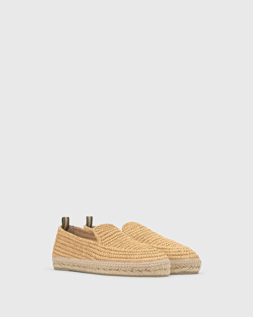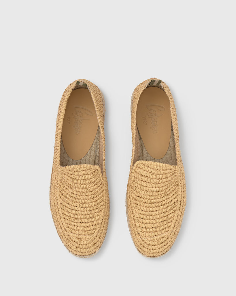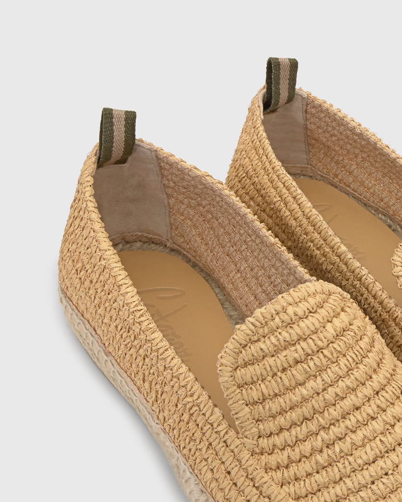 Alpargata plana Joaquin en rafia natural con diseño estilo mocasín y suela de yute.