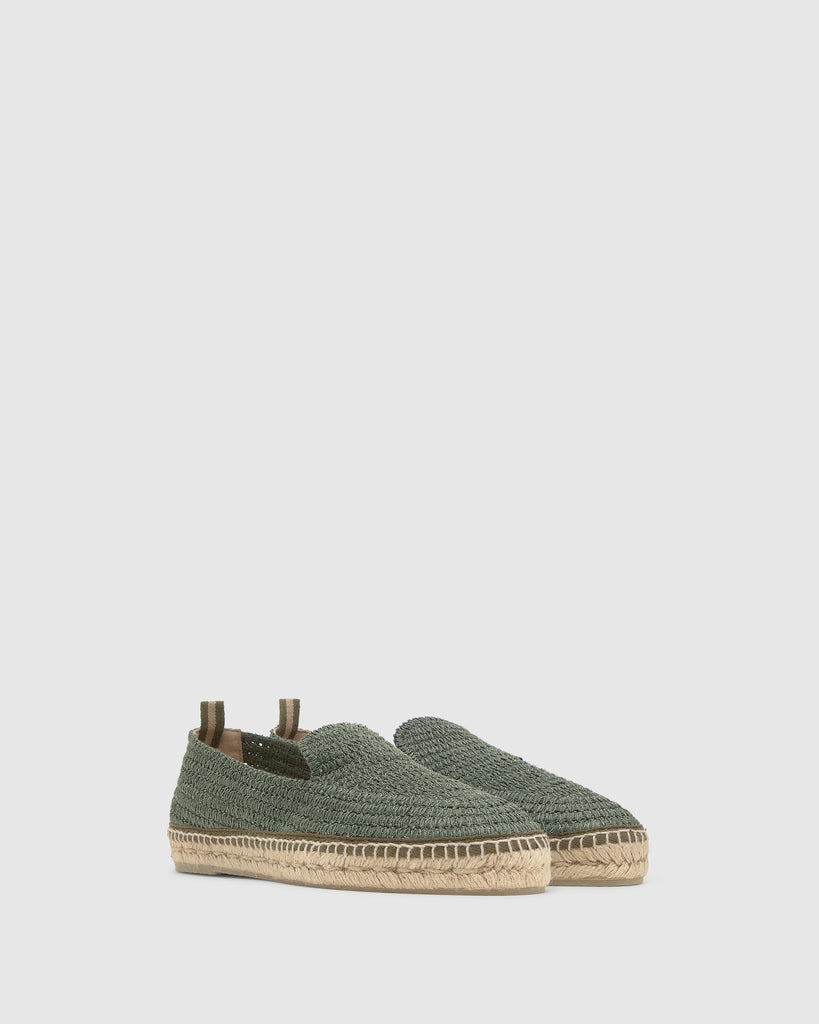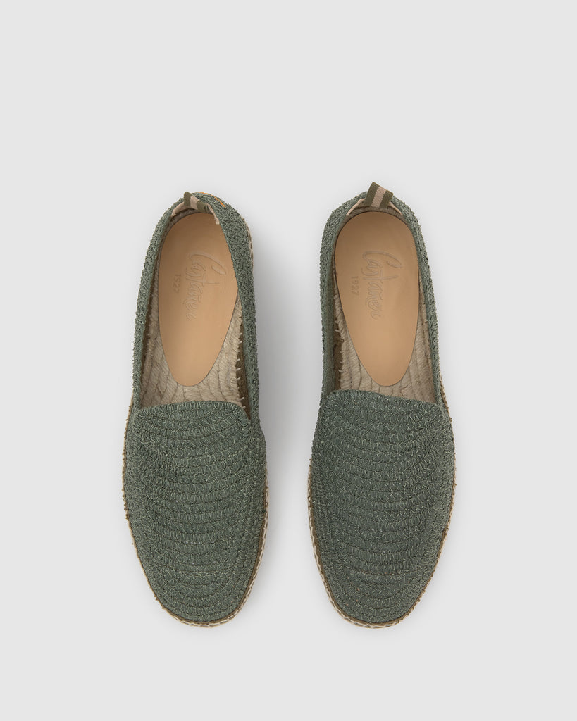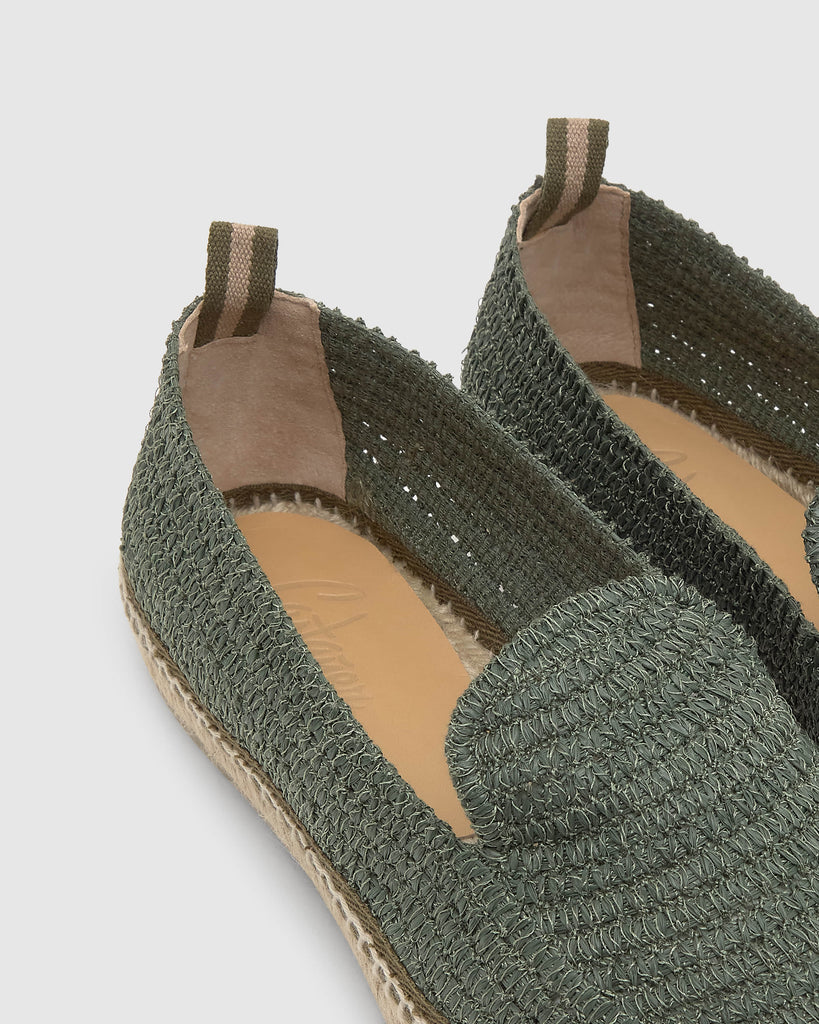 Alpargata plana Joaquin en rafia natural con diseño estilo mocasín y suela de yute.