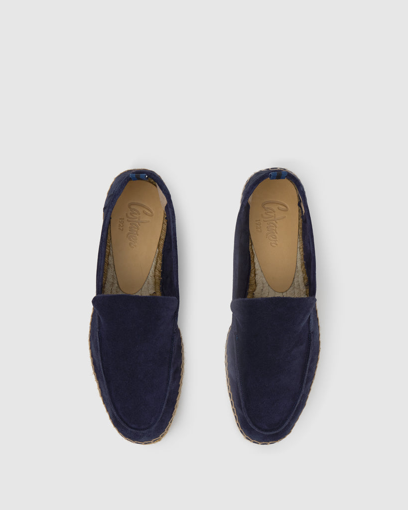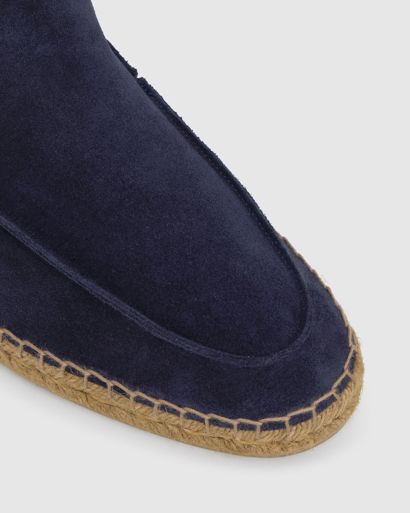 Alpargata Nino estilo mocasín en serraje con suela de yute taupe.