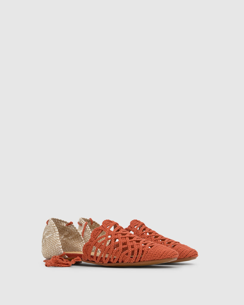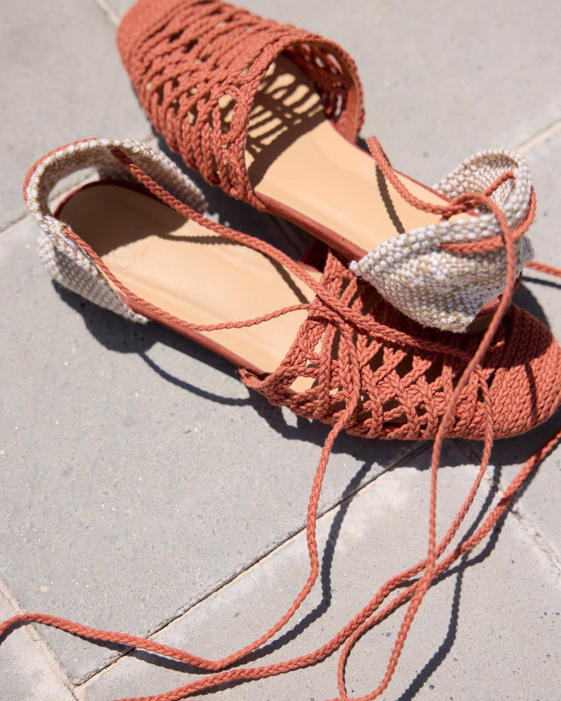 Alpargata plana Genoveva en algodón trenzado a mano con cierre de cordones a juego y plantilla acolchada.