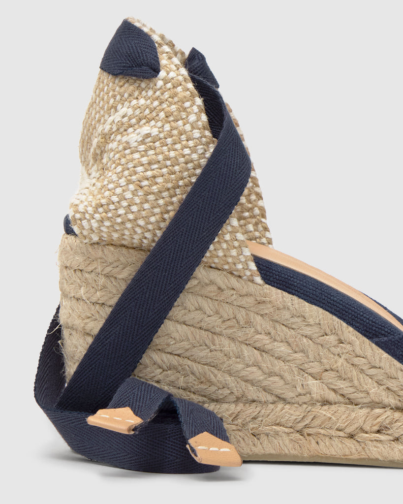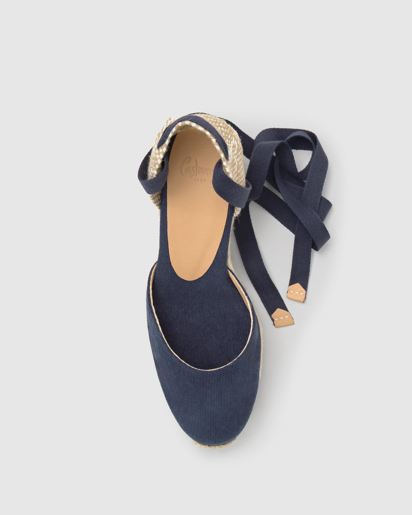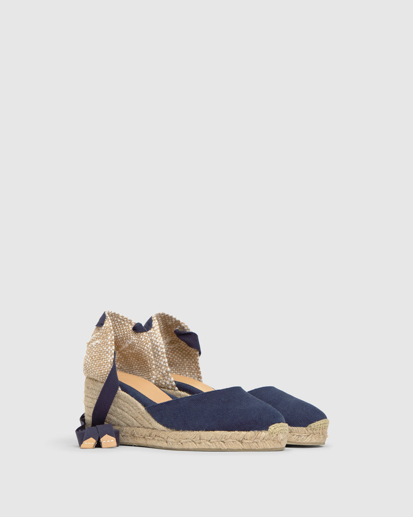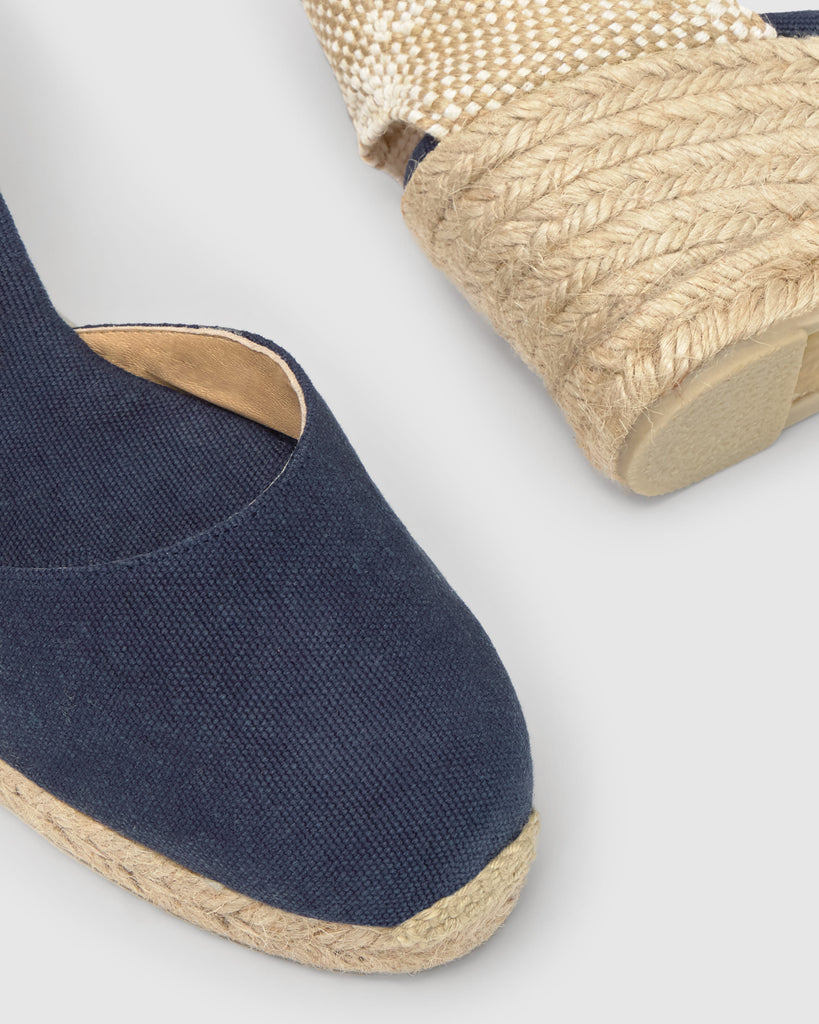 Carina, nuestras icónicas alpargatas, vuelven como cada temporada para convertirse en un imprescindible atemporal de tu fondo de armario. Confeccionadas en España en algodón orgánico certificado y acabado lavado sostenible, las alpargatas Carina presentan puntera cerrada redondeada, cierre mediante lazada, cuña de 7cm y suela de caucho vulcanizado.