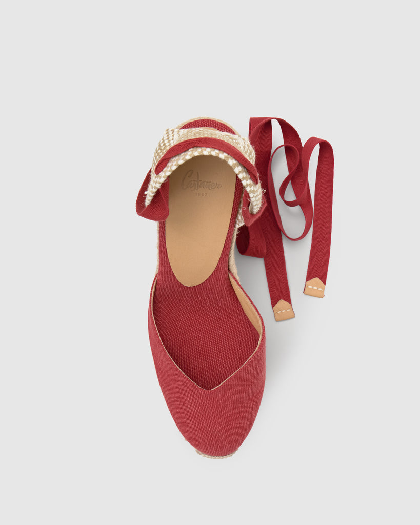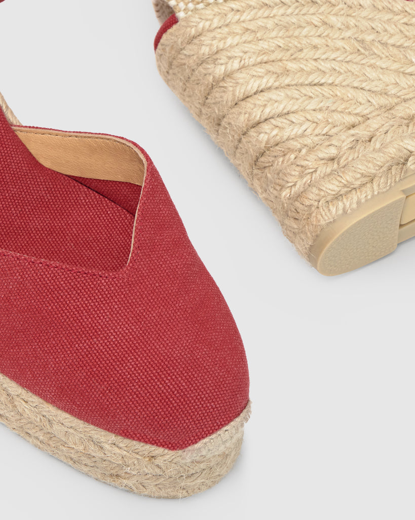 Emana estilo único con Chiara, las icónicas alpargatas que te acompañarán en tus mejores ocasiones. Confeccionadas en España en algodón orgánico lavado sostenible, las alpargatas Chiara presentan escote a V, puntera cerrada redondeada, cierre mediante lazada, cuña de 11cm con doble plataforma de yute y suela de caucho vulcanizado.