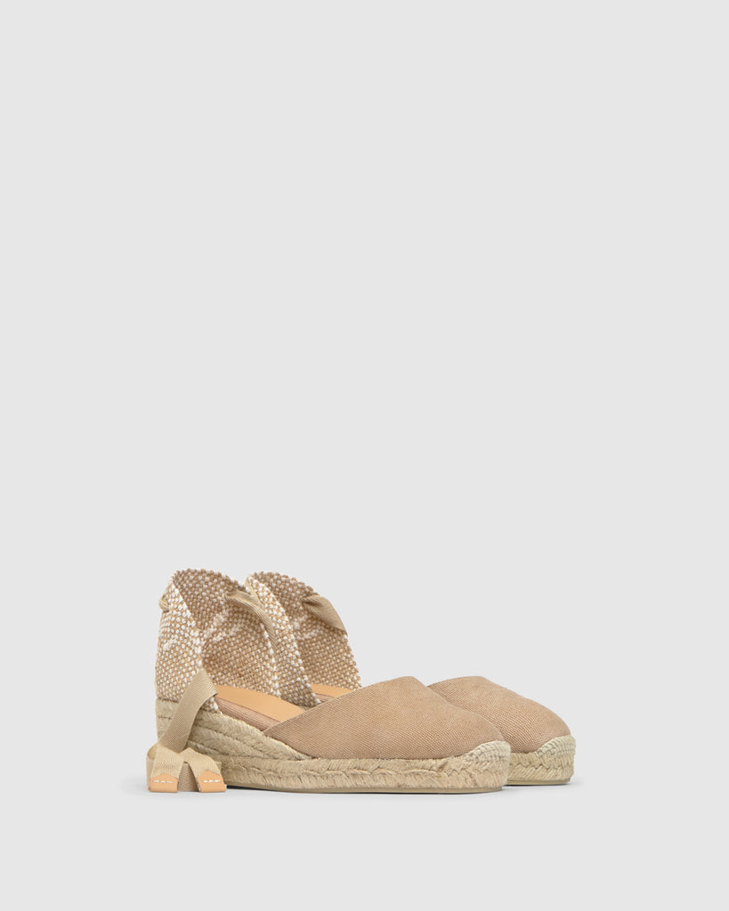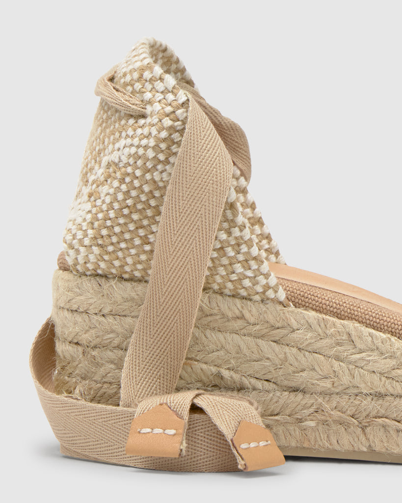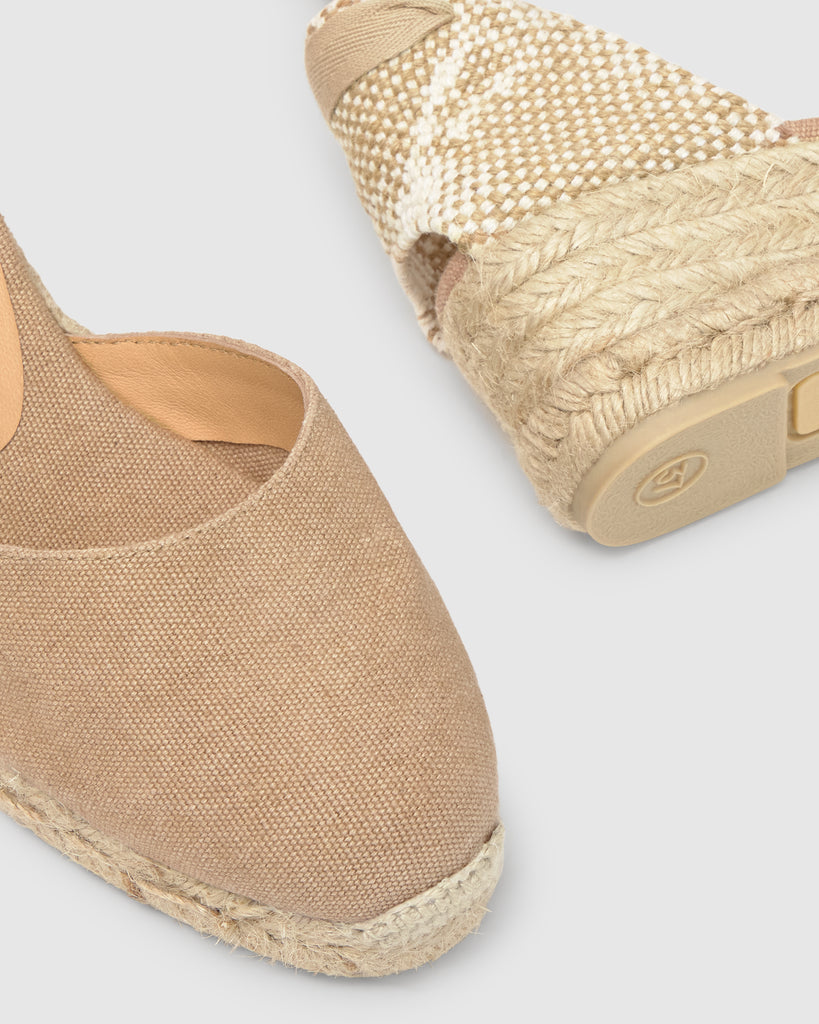 Alpargata Carina en algodón orgánico lavado con cierre de lazada, plantilla acolchada y cuña de yute de 5 cm.