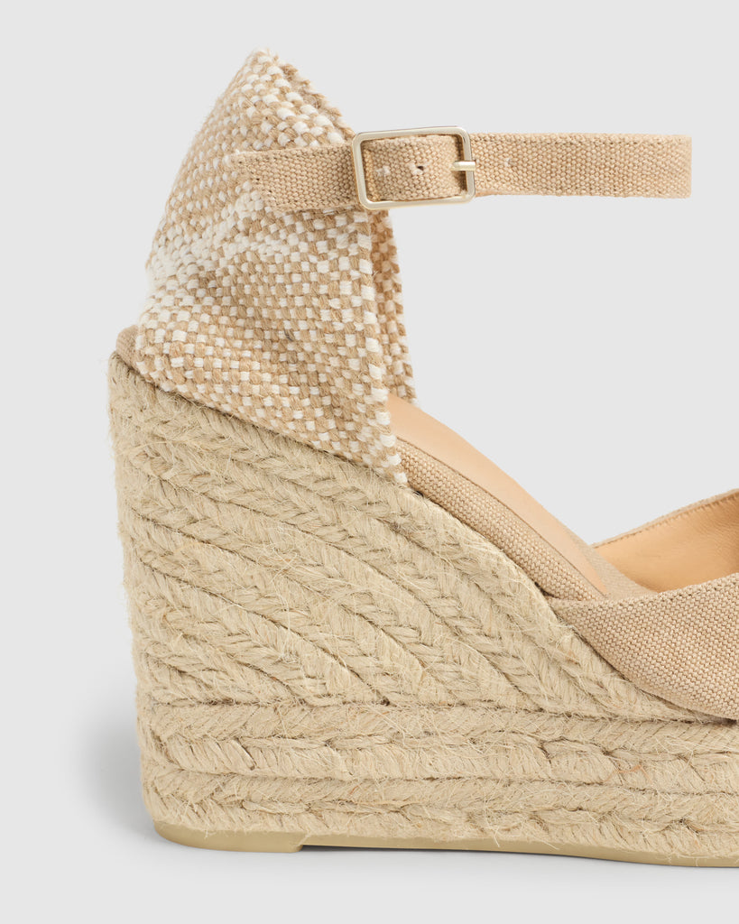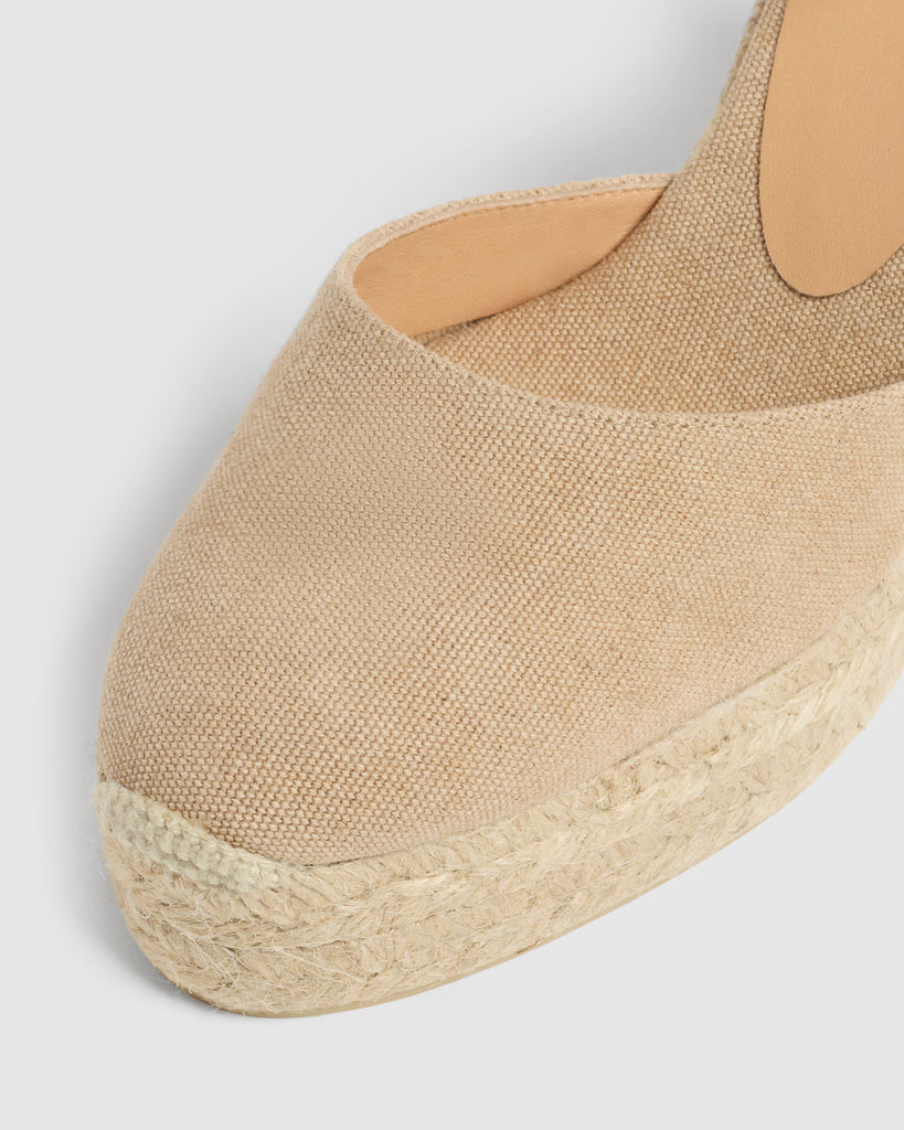 El modelo Carol es todo un referente para el día a día. Descubre nuestras icónicas alpargatas y enamórate de ellas. Confeccionadas en España en algodón orgánico y acabado lavado sostenible. Las alpargatas Carol presentan puntera cerrada redondeada, cierre lateral de pulsera con hebilla metálica, cuña de 11cm con doble plataforma de yute y suela de caucho vulcanizado.
