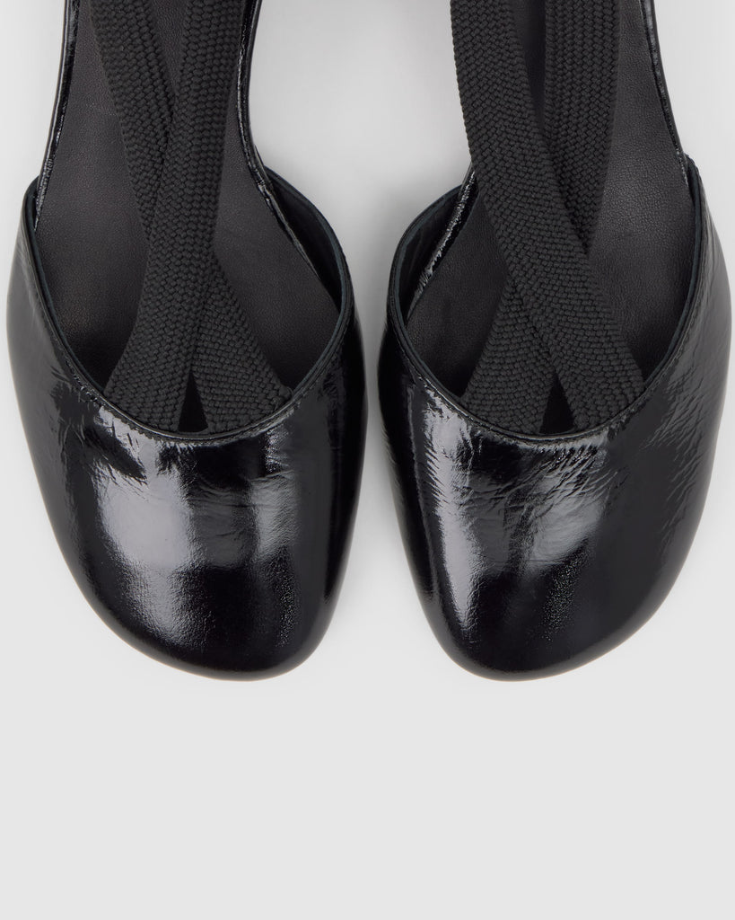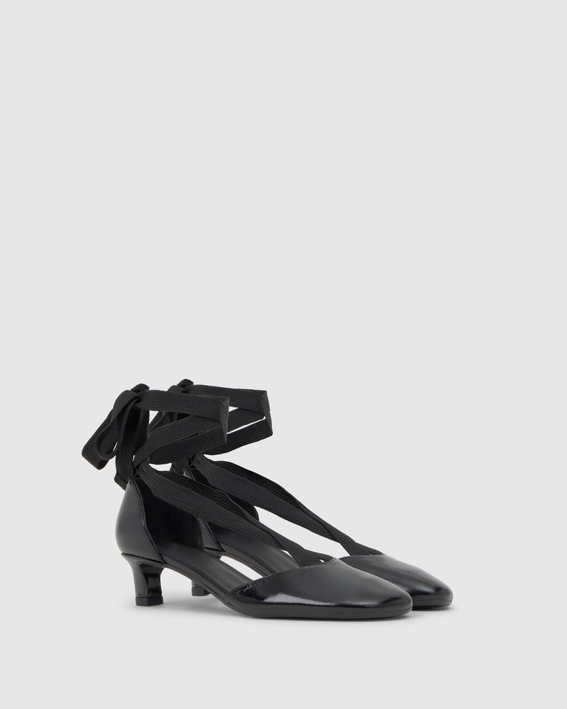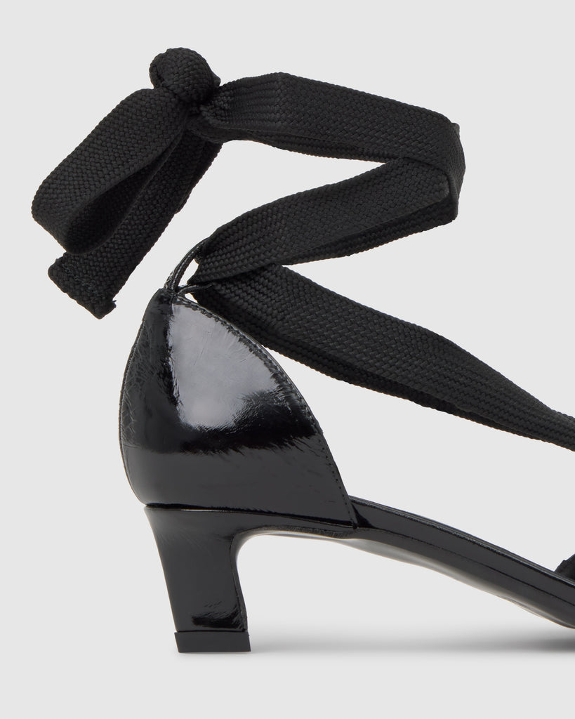 Zapato tacón Aline en charol combinado con cintas de tela, plantilla acolchada y tacón kitten de 4cm.