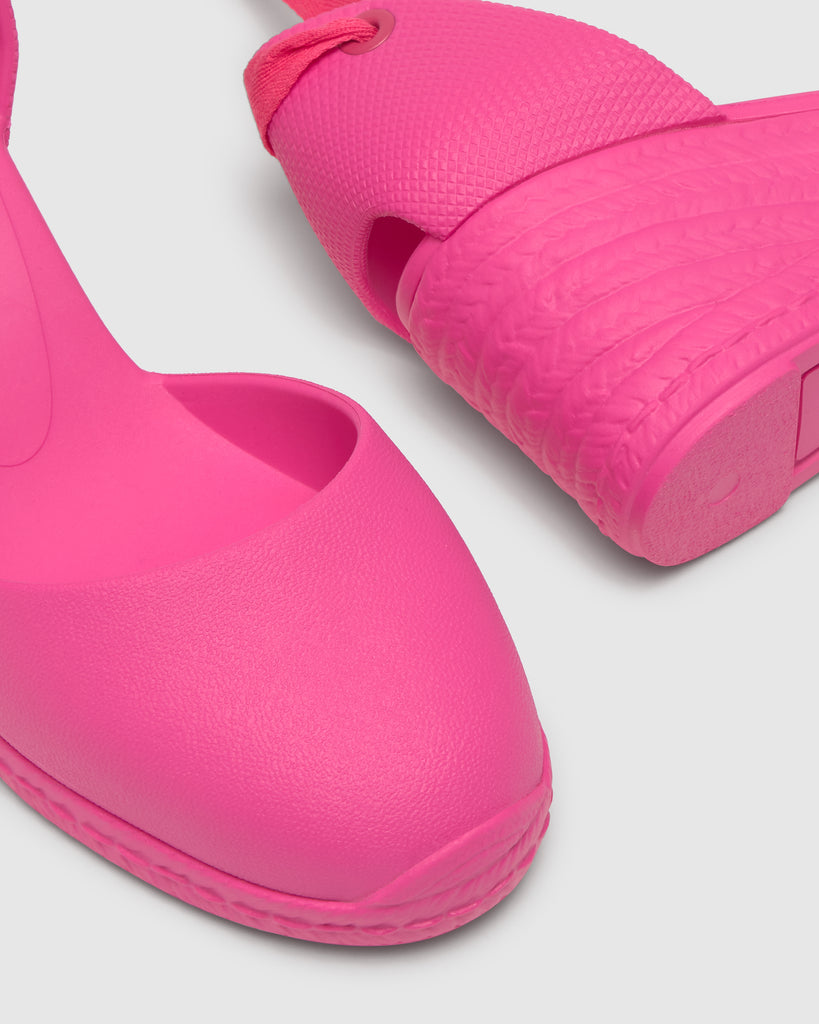 Reinventamos la alpargata con Careen, confeccionada en goma EVA a base de caña de azúcar, cierre de cintas de algodón orgánico y cuña de 7cm.