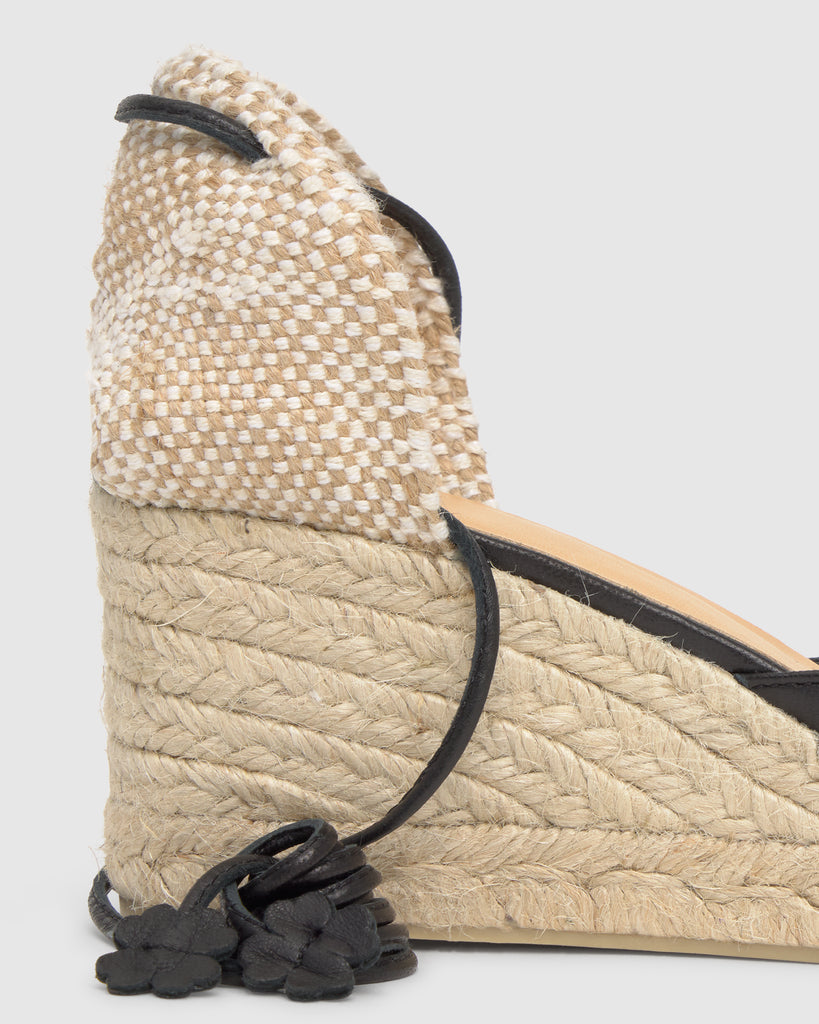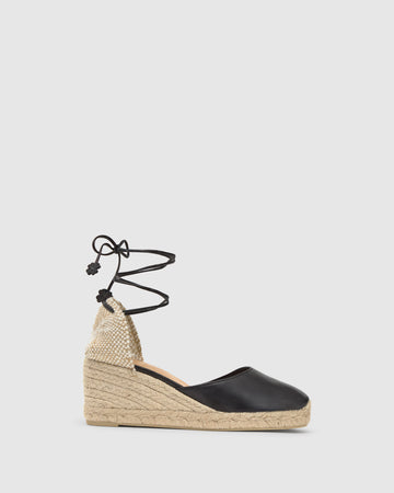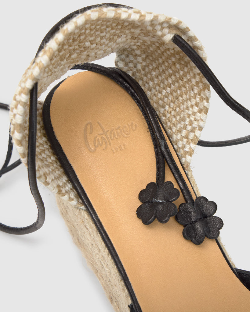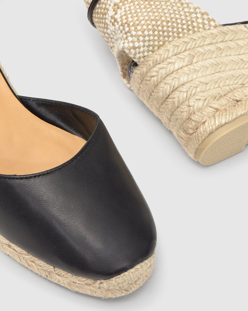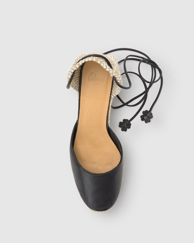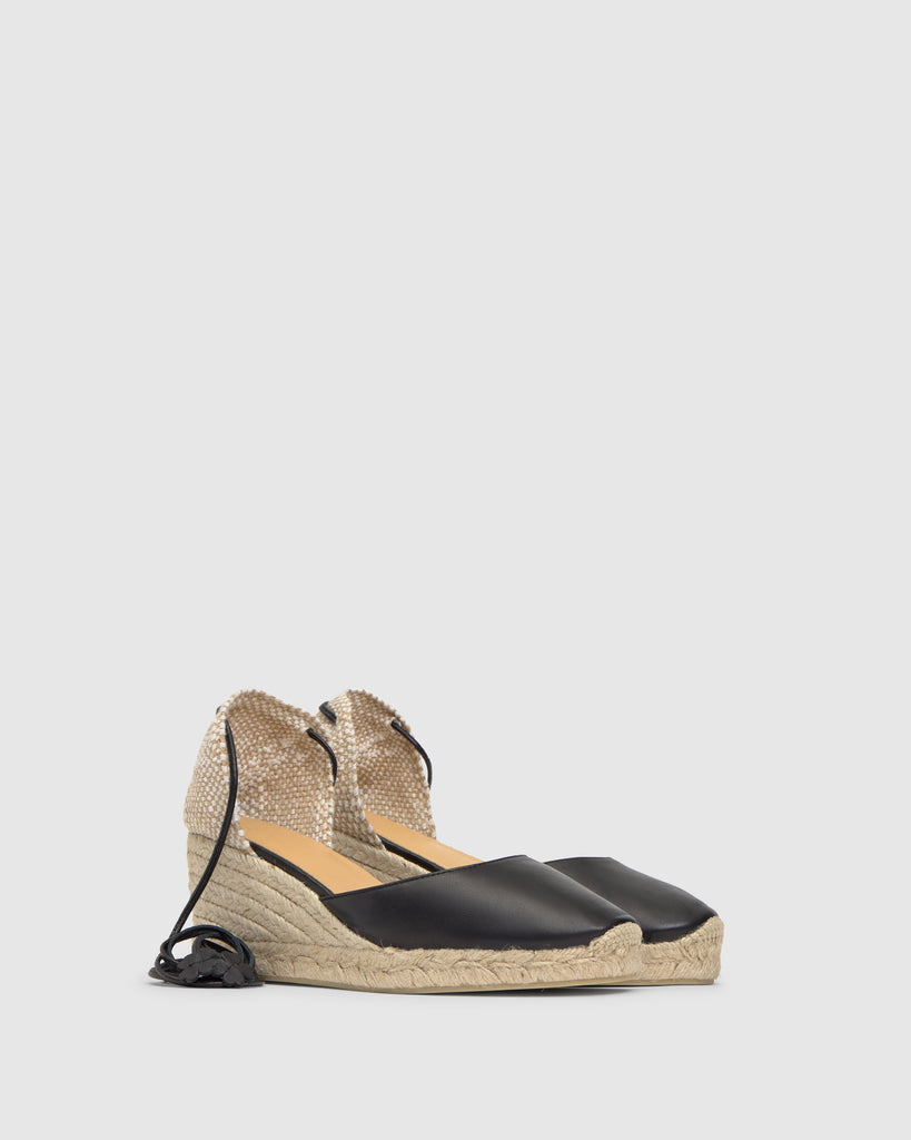 Disfruta de la sofisticación y el savoir-faire de Castañer con las alpargatas CARINA, reinventadas en napa de cuero de alta calidad. Cuentan con el versátil cierre de cintas de cuero y cuña de yute de 7cm.