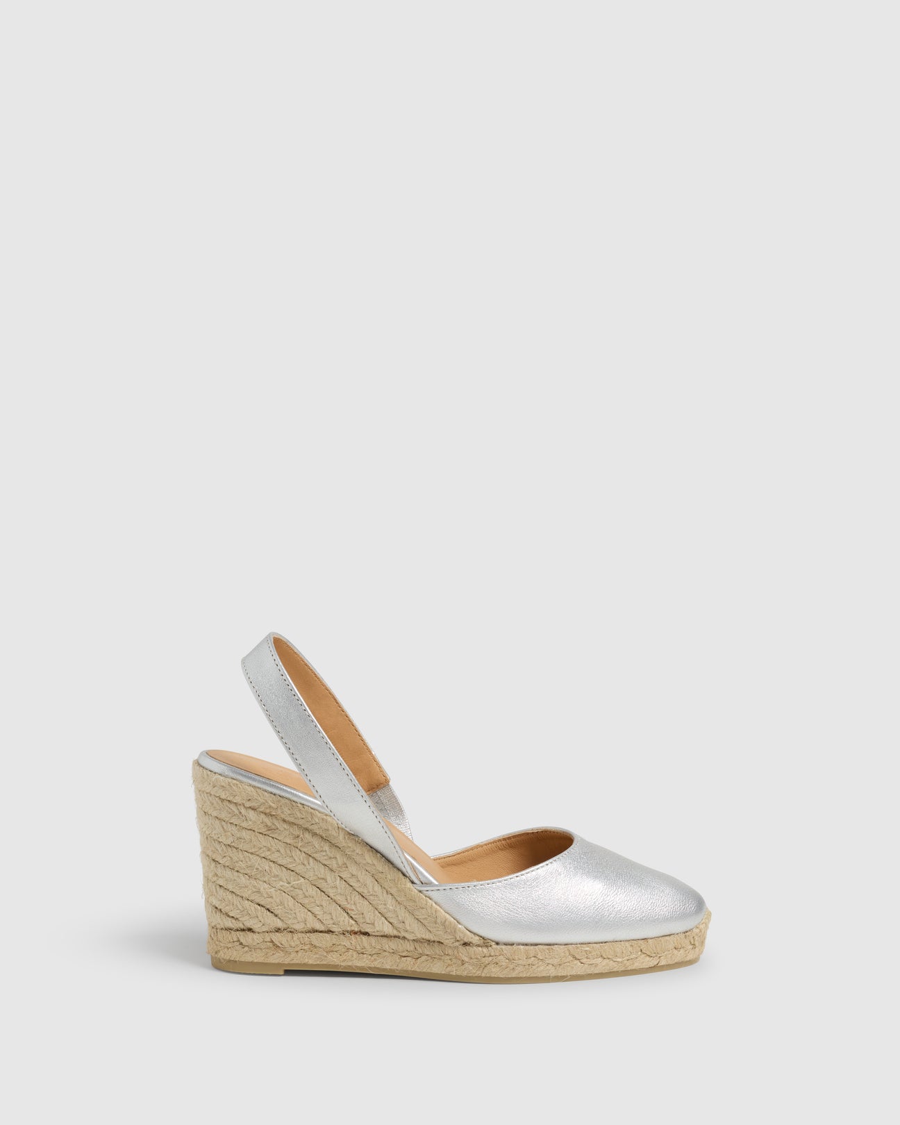 Eleva tus looks estivales con nuestras alpargatas Carissa. Confeccionadas en España en piel metalizada, las alpargatas Carissa presentan puntera cerrada redondeada, abertura en la parte posterior del talón, cuña de 9cm y suela de caucho vulcanizado.