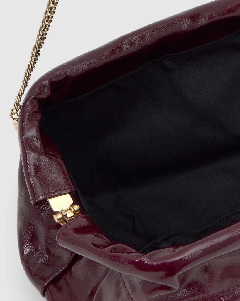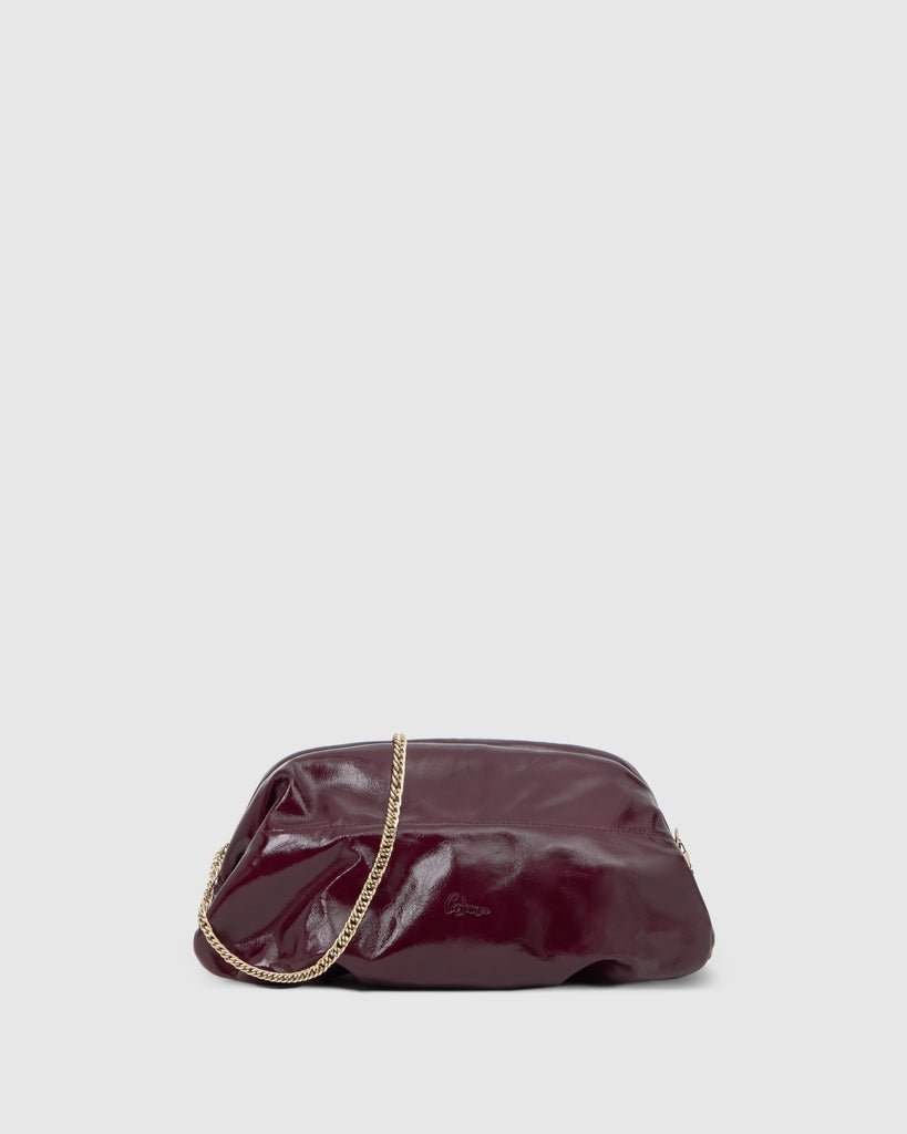 Bolso Small Victoire tipo pochette en charol con cierre de click y cadena dorada extraíble.