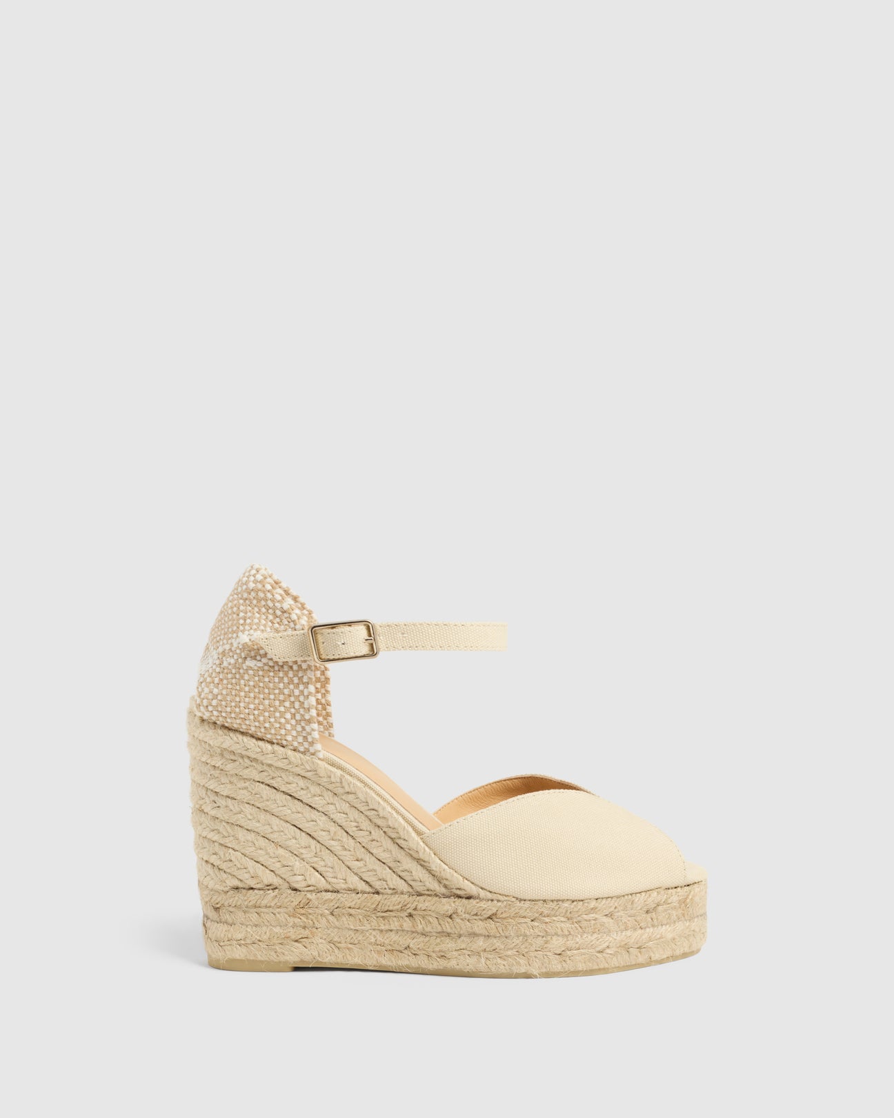 Ensalza tus looks con nuestras alpargatas Bianca, un estilo único que derrocha personalidad propia. Confeccionadas en españa artesanalmente en algodón orgánico certificado, las alpargatas Bianca se convertirán en tus mejores aliadas para el día a día. Presentan puntera abierta redondeada, cierre lateral de pulsera con hebilla metálica, cuña de 11cm con doble plataforma de yute y suela de caucho vulcanizado.