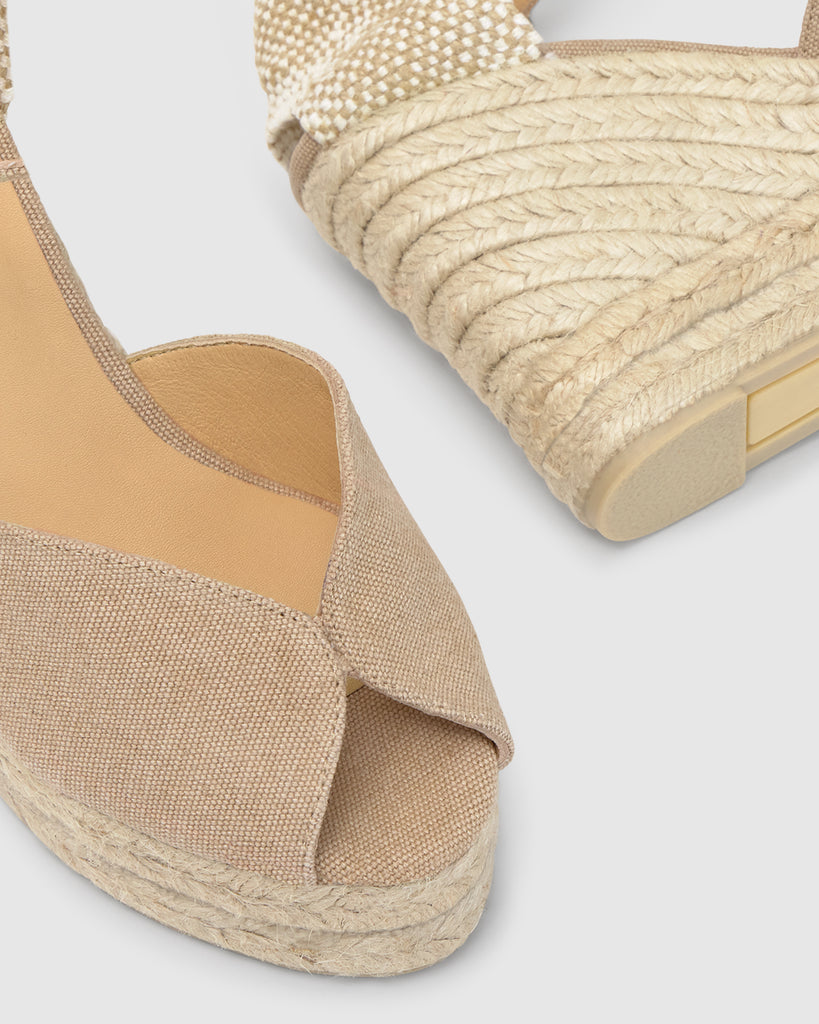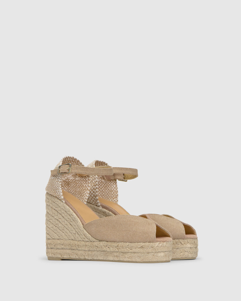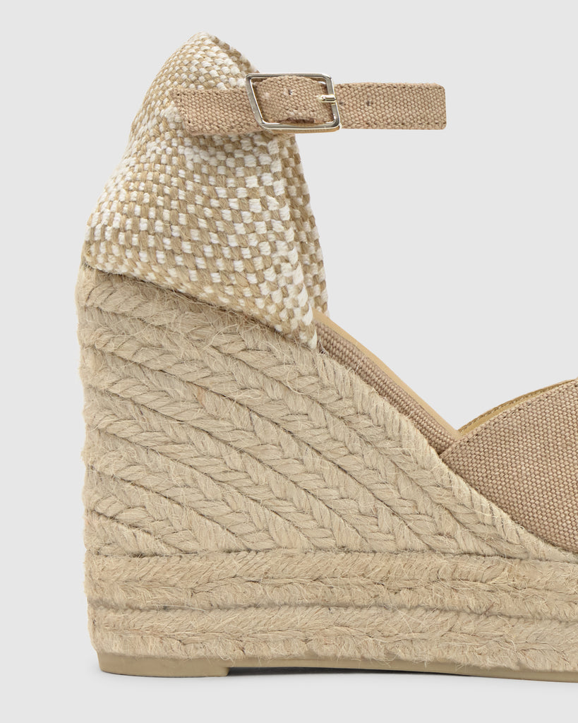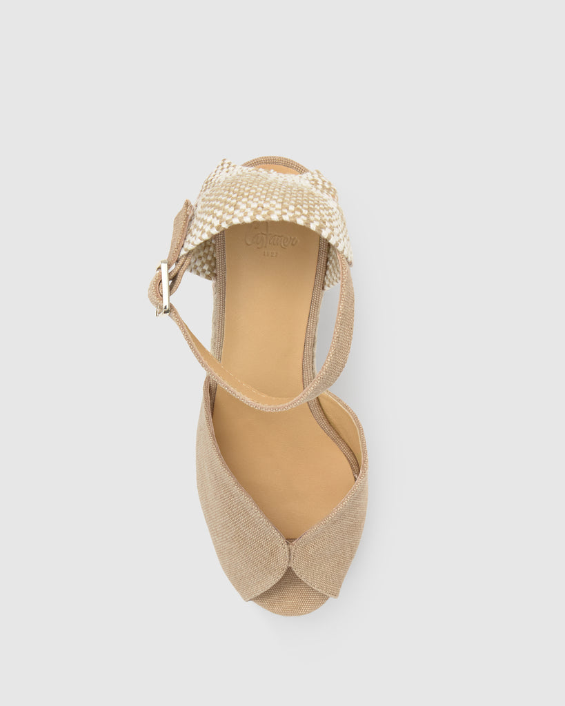 Ensalza tus looks con nuestras alpargatas Bianca, un estilo único que derrocha personalidad propia. Confeccionadas artesanalmente en españa en algodón orgánico certificado y acabado lavado sostenible. Las alpargatas Bianca se convertirán en tus mejores aliadas para el día a día. Presentan puntera abierta redondeada, cierre lateral de pulsera con hebilla metálica, cuña de 11cm con doble plataforma de yute y suela de caucho vulcanizado.