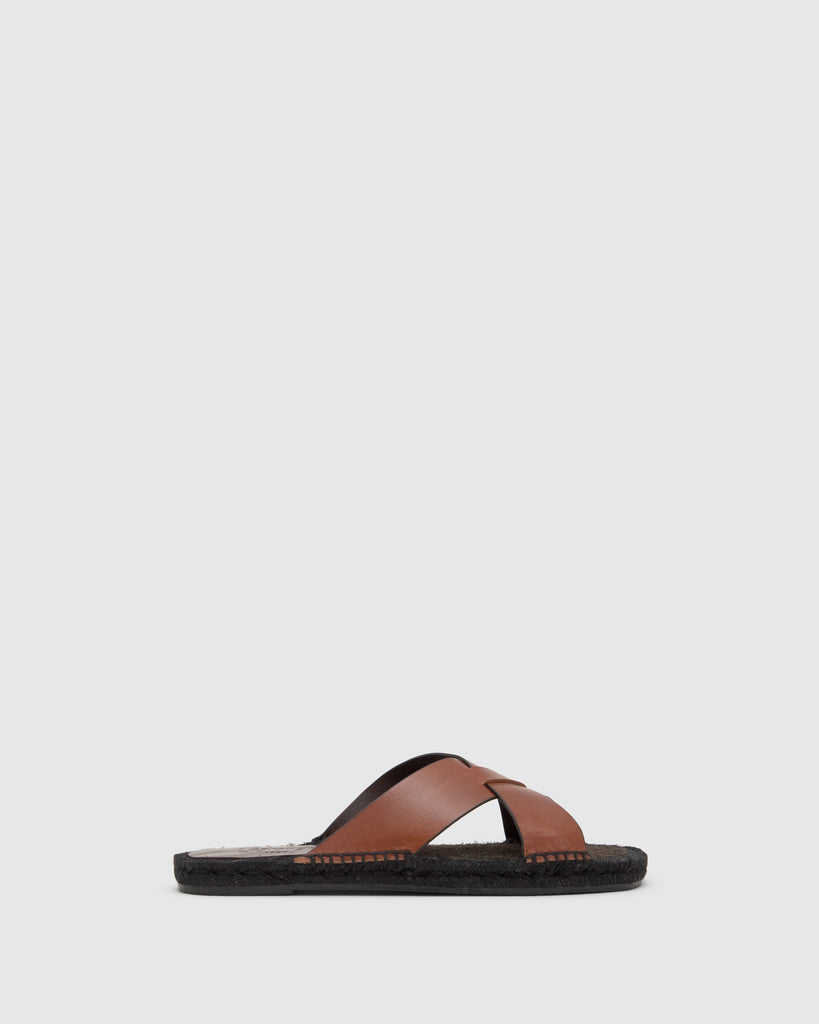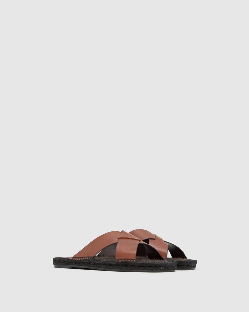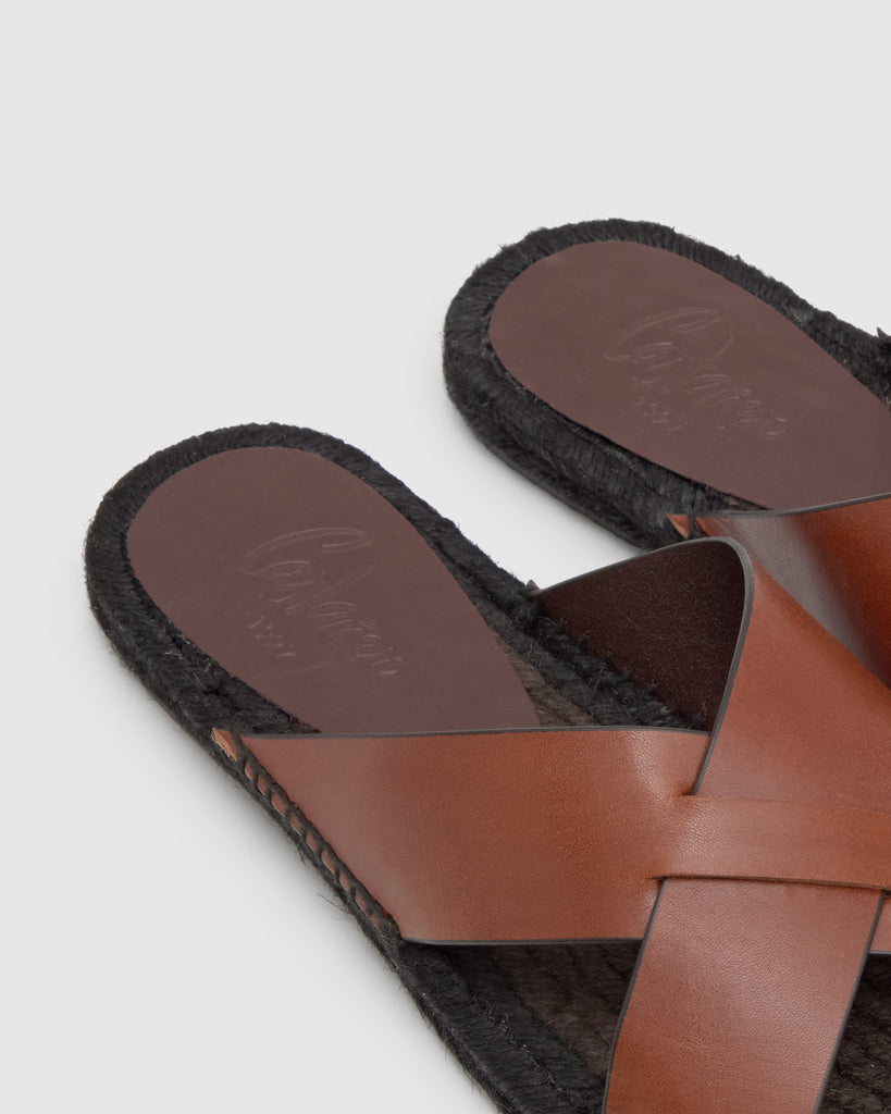 Sandalia plana Keanu en vaqueta con suela de yute tintada bicolor.