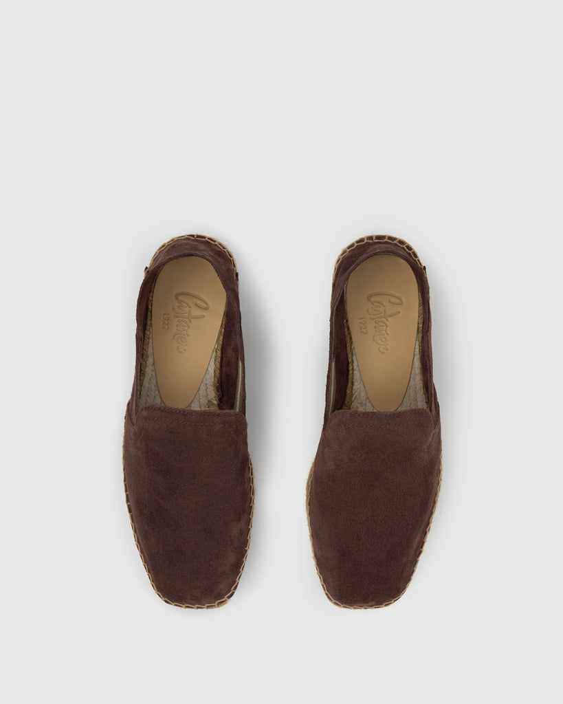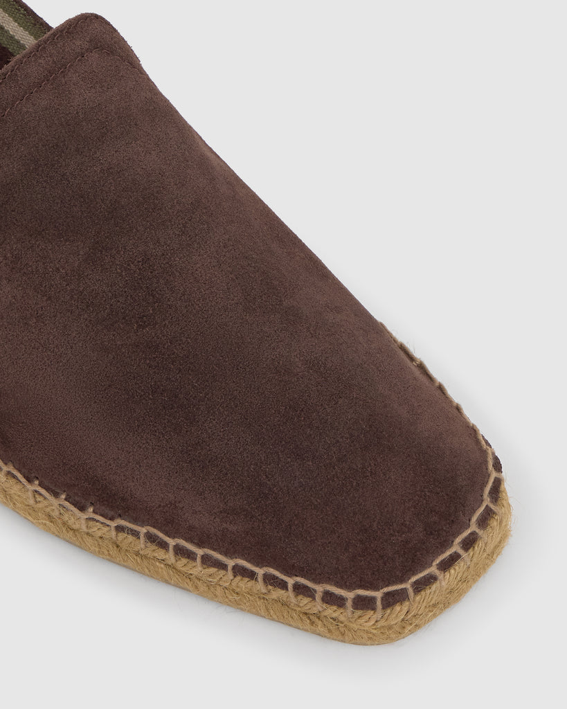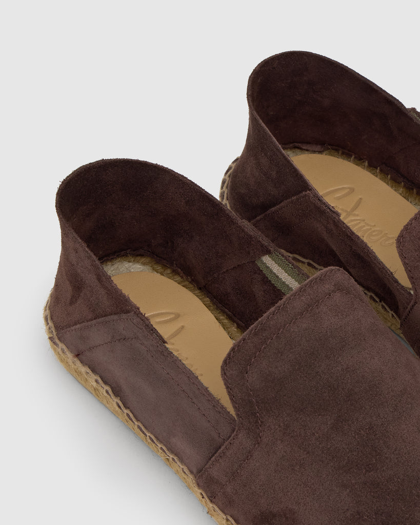 Alpargata Parker estilo slipper en serraje con talonera pisable y suela de yute taupe.